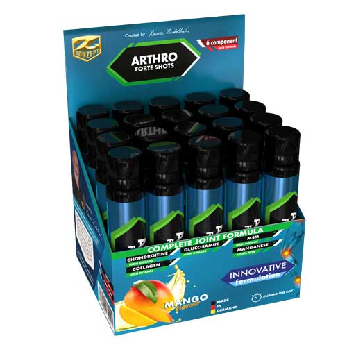 Az Artho Forte Shots-ban összeállítottuk az összes jelenlegi ízületvédelemhez társított összetevőt: glükózamin-szulfátot, kondroitin-szulfátot, metilszulfonil-metánt (MSM), kollagén hidrolizátumot és mangán-szulfátot.