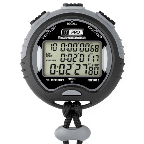 Egy magas minőségű T-PRO digitális időzítő, amely akár 10 időközt is tárolhat. Ez a magas pontosságú, vízálló digitális időzítő részben gumírozott házzal rendelkezik, és sok hasznos funkcióval rendelkezik az edzők számára. További időzítőket és érdekes edzéstámogatásokat találhat üzletünkben. Termékeinket a szakmai szektorban is használják.