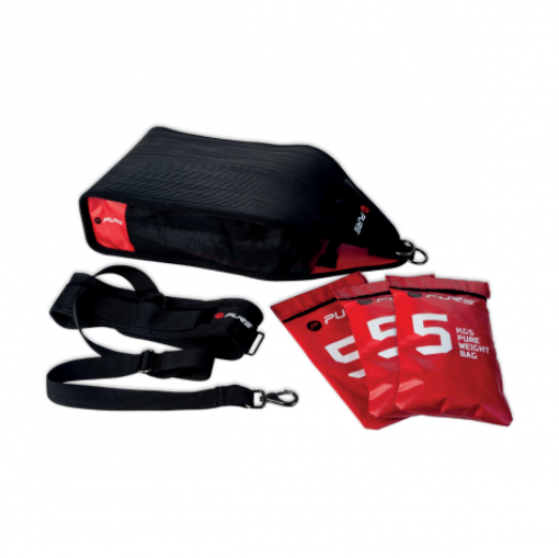 Sprintsac. Fekete és piros. Tartalmazza: 3x5kg homokzsákok (homok nem tartozéka), öv, táska. Megerősíti az alsótest izmait. Tartalmaz 3 állítható súlyú zsákot: minden zsák max. 5 kg homokkal tölthető meg (összesen 15 kg). Anyag: 100% PVC.