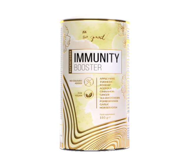Összetevők: alma rost, kurkuma gyökér por (Curcuma longa L.), csipkebogyó kivonat (Rosa canina L.), acerola gyümölcs kivonat (Malpighia glabra L.; 25% C-vitamin), őrölt fahéj (Cinnamomum cassia), őrölt gyömbér gyökér (Zingiber officinale), homoktövis gyümölcs por (Hippophae rhamnoides L.), cseresznye por (Prunus cerasus L.), áfonya kivonat (Vaccinium macrocarpon Aiton), goji bogyó por (Lycium barbarum L.), gránátalma por (Punica granatum L.), fokhagyma por (Allium sativum L.), bodzakivonat (Sambucus nigra L.), torma gyökér por (Armoracia rusticana P. Gaertn., B. Mey. Et Scherb.), guava por (Psidium guajava L.), málna por (Rubus idaeus L.), acai por (Euterpe oleracea) [80 mg], baobab gyümölcs por (Adansonia digitata L.), áfonya por (Vaccinium corymbosum L.), eper por (Fragaria ananassa Duchesne ex Weston) [30 mg], áfonya por (Vaccinium myrtillus L.) [20 mg], répa por (Daucus carota L.) [19,5 mg], olíva por Hytolive® (Olea europaea L.) [0,5 mg].