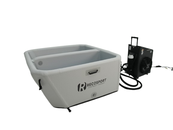 RECOSPORT MEDENCE két különálló kamrával rendelkezik, az egyik 5-10°C hőmérsékletű vízzel, a másik 35-38°C hőmérsékletű vízzel.