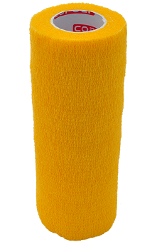 Sárgaító, öntapadós és vízálló rugalmas kötés, amelyet a csukló körüli támogatáshoz ajánlunk.