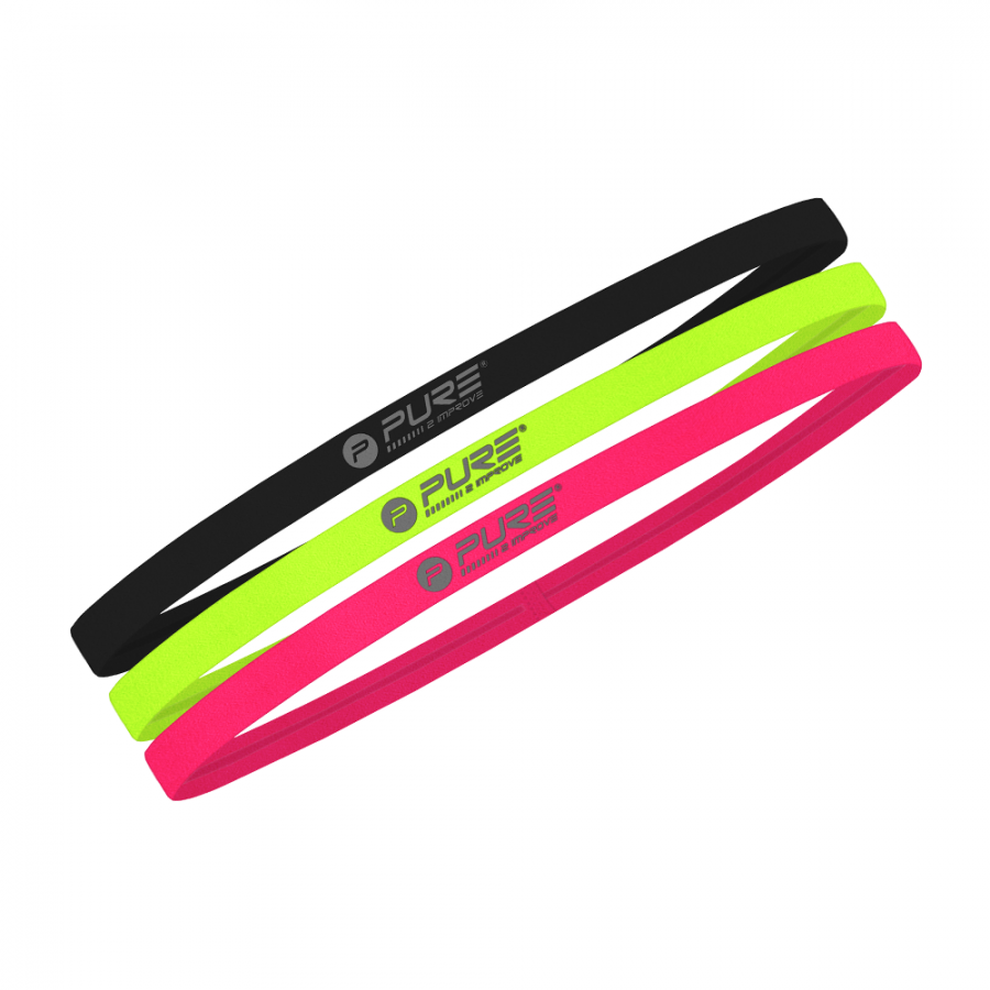 Fejpántok, 3 darabos készlet fekete, neonpink és neonsárga színekben. Az elasztikus P2I hajpántok minden méretre alkalmasak és kényelmesen viselhetők. A P2I logó nyomtatása fényvisszaverő anyagból készült.