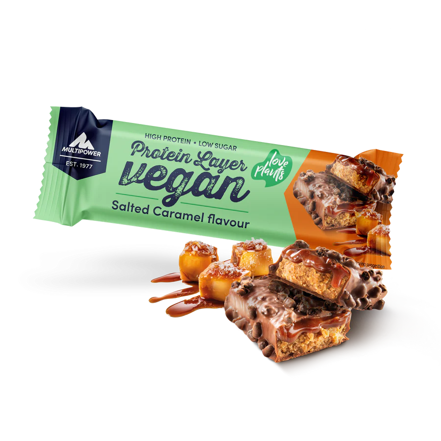 A vegán proteinréteges szeletek egyedi keverékből készülnek, amely szójafehérjét, rizsfehérjét és borsófehérjét tartalmaz. Kevesebb mint 1 g cukorral és 216 kcal-val ideális fitnesz nassolnivaló edzés után vagy étkezések között. Finom ízt kínálnak, és támogatják az izomnövekedést és a fogyást, mivel fedezik a napi fehérjeszükségletet.